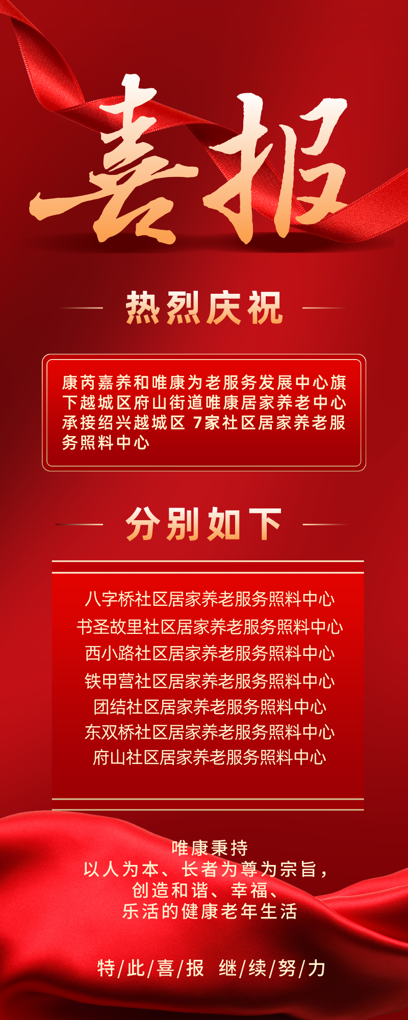 浙江省唯康为老服务发展中心承接绍兴越城区7家社区居家养老服务照料中心