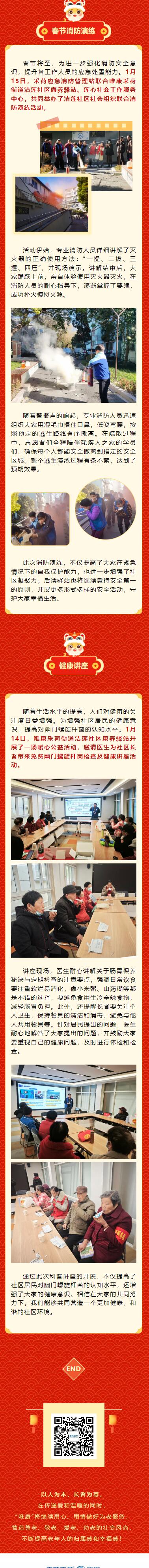 【唯康采荷街道洁莲社区康养驿站】筑牢春节安全防线,消防演练、健康讲座系列活动