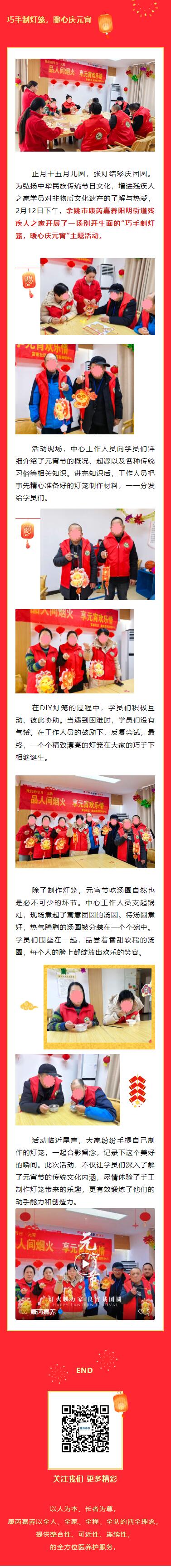 【余姚市阳明街道康芮嘉养残疾人之家】“巧手制灯笼,暖心庆元宵”主题活动