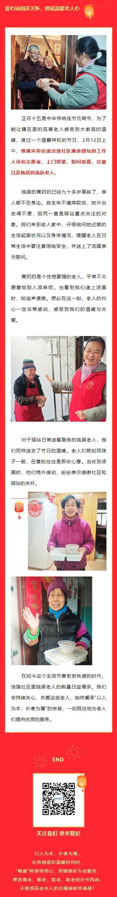 【唯康采荷街道洁莲社区康养驿站】“爱心汤圆送关怀,驿站温暖老人心”活动