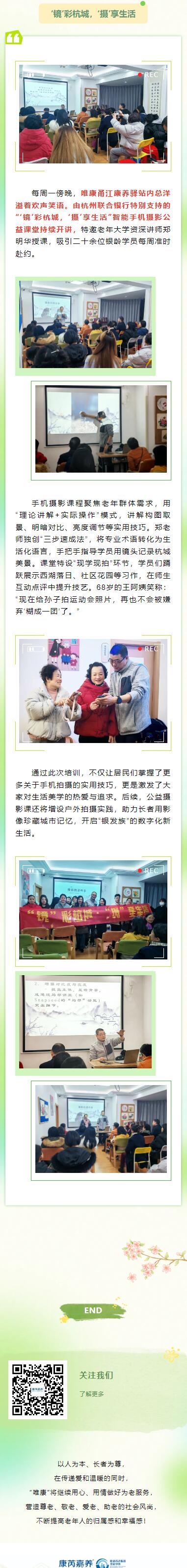 【唯康甬江社区康养驿站】“‘镜’彩杭城,‘摄’享生活”智能手机摄影公益课堂