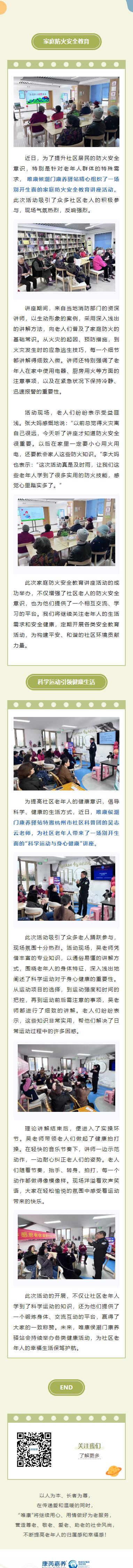 【唯康候潮门康养驿站】家庭防火安全教育、科学运动与身心健康系列讲座