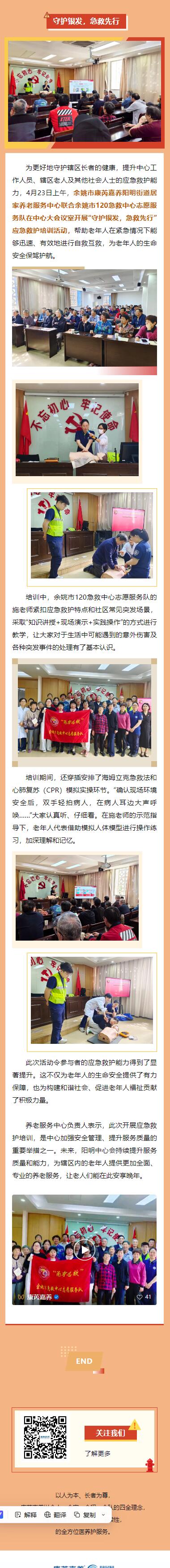 【余姚市康芮嘉养阳明街道居家养老服务中心】“守护银发,急救先行”应急救护培训活动