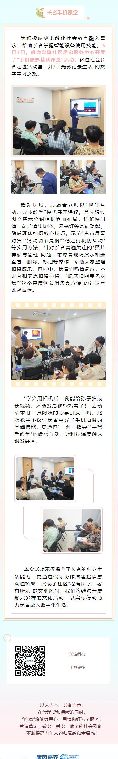 【唯康兴隆社区居家服务中心】长者手机摄影课堂主题活动