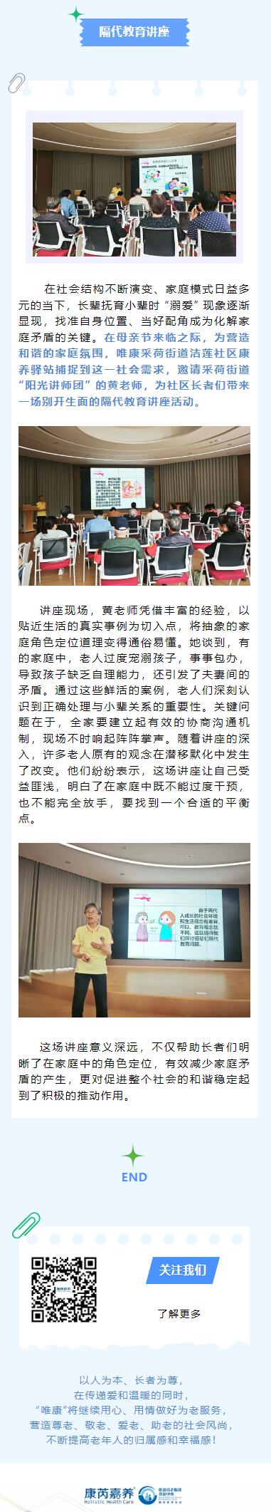 【唯康采荷街道洁莲社区康养驿站】隔代教育讲座活动