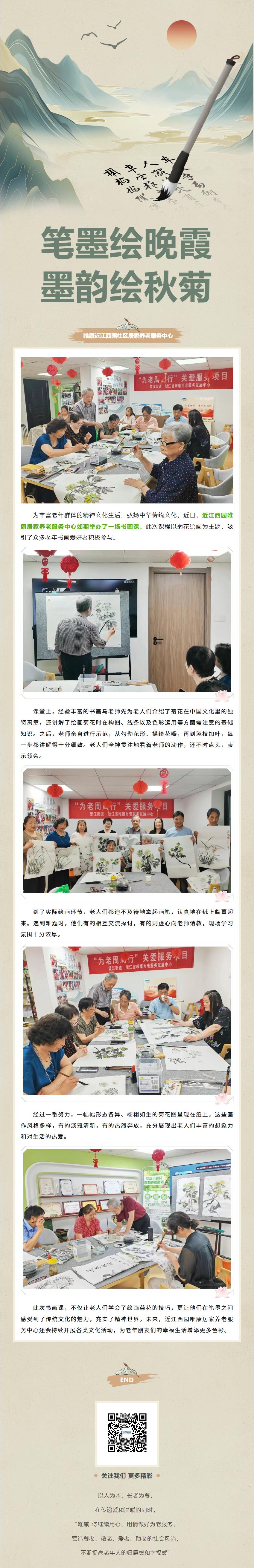 【唯康近江西园社区居家养老服务中心】“笔墨绘晚霞,墨韵绘秋菊”书画课堂