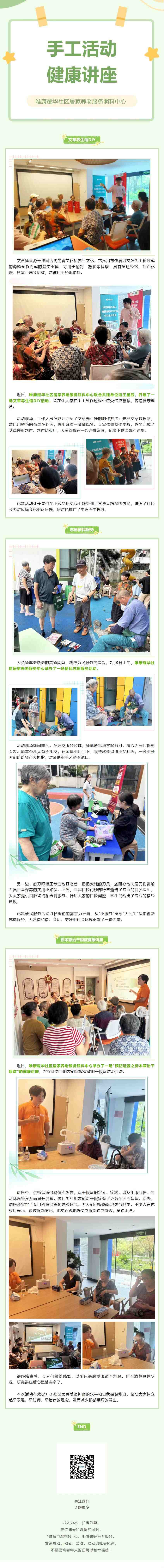【唯康耀华社区居家养老服务照料中心】艾草养生锤DIY、志愿便民服务、健康讲座系列活动