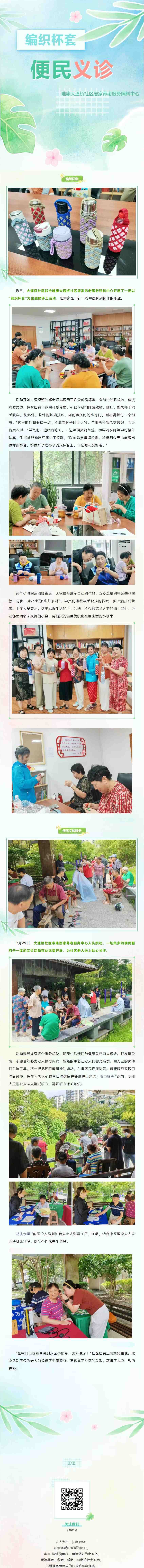 【唯康大通桥社区居家养老服务照料中心】编织杯套、便民义诊服务系列活动