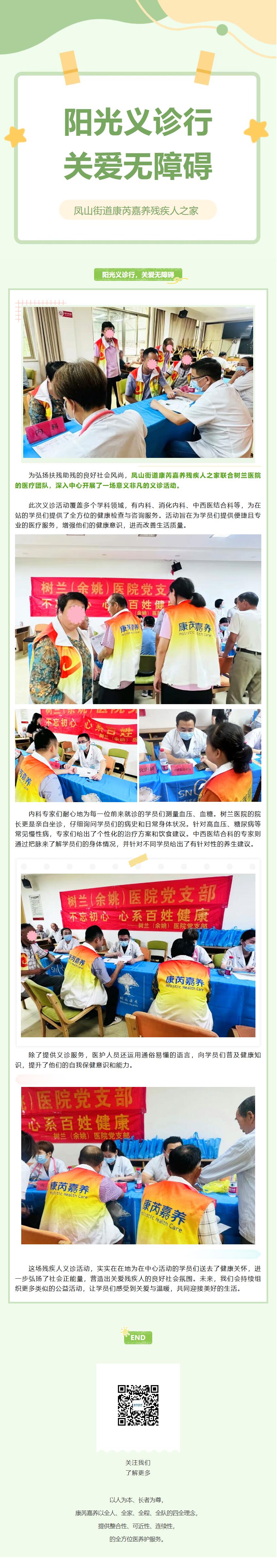 【余姚市凤山街道康芮嘉养残疾人之家】“阳光义诊行,关爱无障碍”健康爱心义诊活动