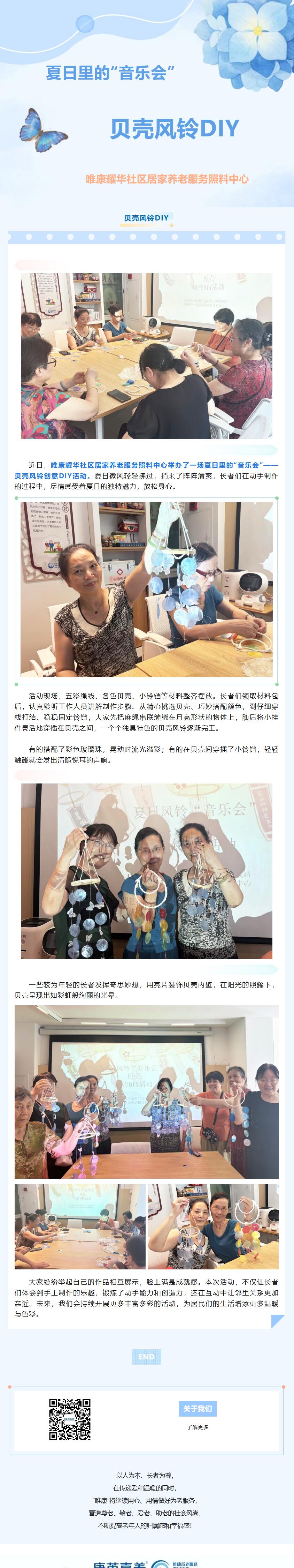 【唯康耀华社区居家养老服务照料中心】夏日里的“音乐会”,贝壳风铃DIY主题活动