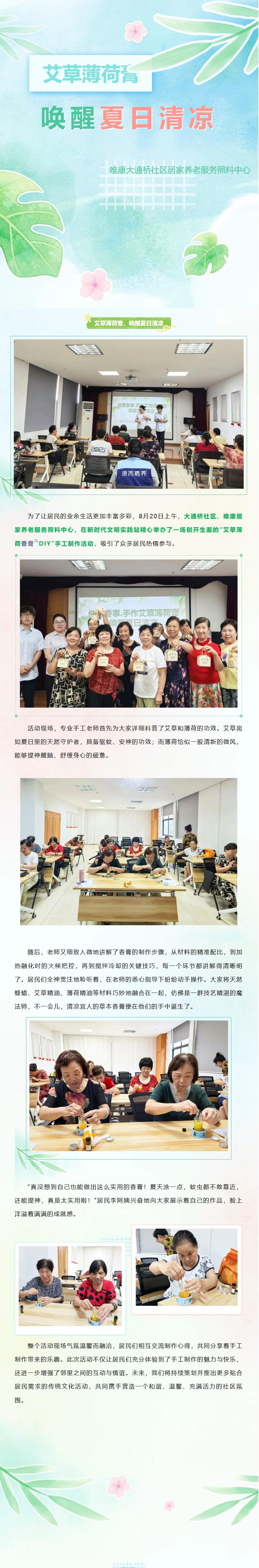 【唯康大通桥社区居家养老服务照料中心】“艾草薄荷膏,唤醒夏日清凉”手工活动