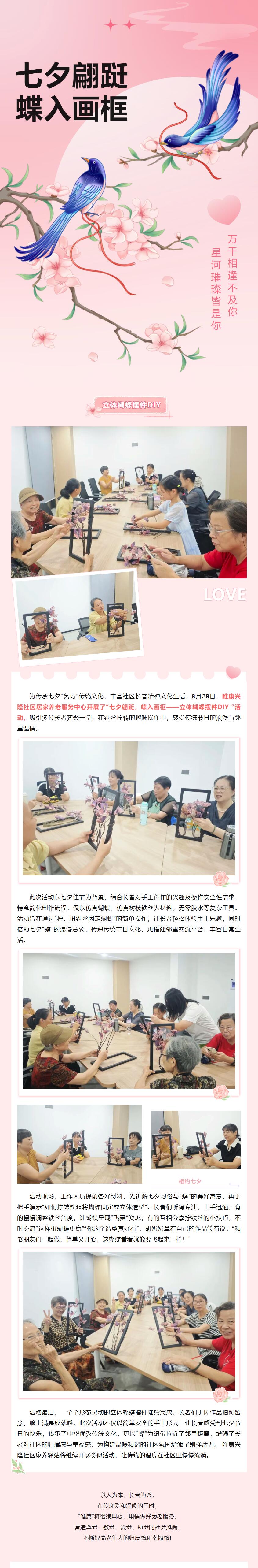 【唯康兴隆社区居家养老服务中心】“七夕翩跹,蝶入画框”立体蝴蝶摆件DIY活动