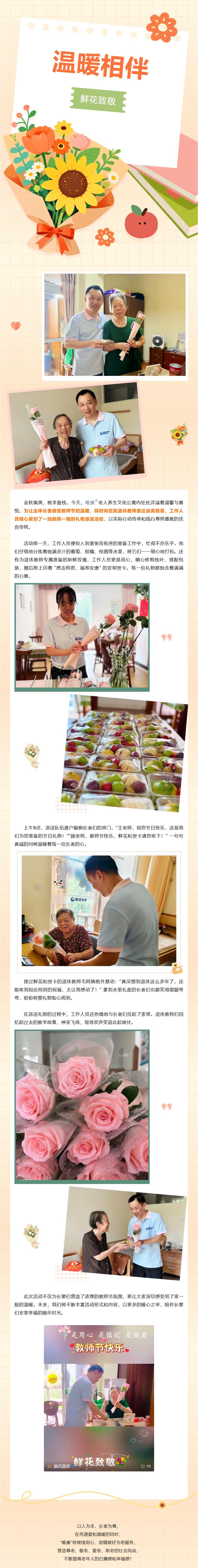 【唯康老人养生文化公寓】“温暖相伴,鲜花致敬”礼贺教师节主题活动