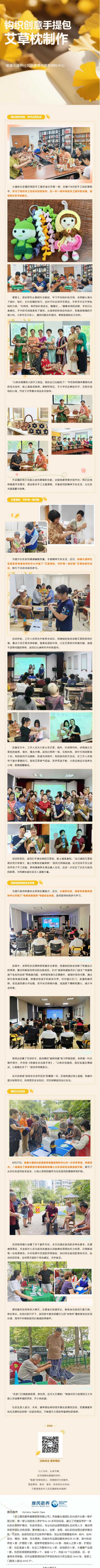 【唯康大通桥社区居家养老服务照料中心】钩织创意手提包、艾草枕制作、便民义诊、安全讲座系列活动