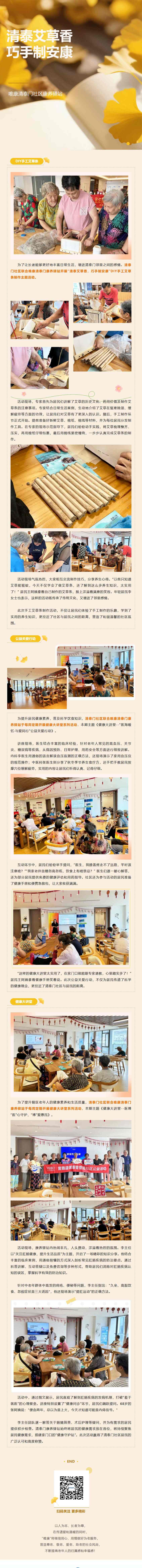 【唯康清泰门社区康养驿站】“清泰艾草香,巧手制安康”DIY手工艾草条、健康大讲堂,公益关爱行动系列活动