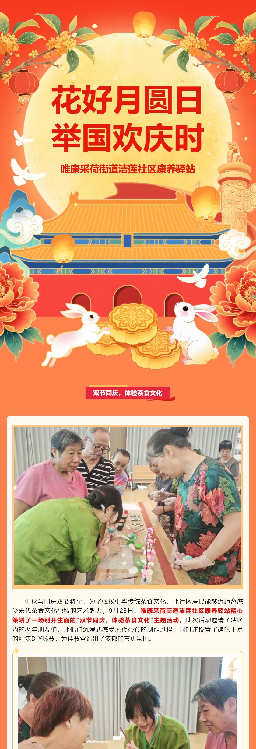 【唯康采荷街道洁莲社区康养驿站】“双节同庆,体验茶食文化”共度团圆盛宴主题活动