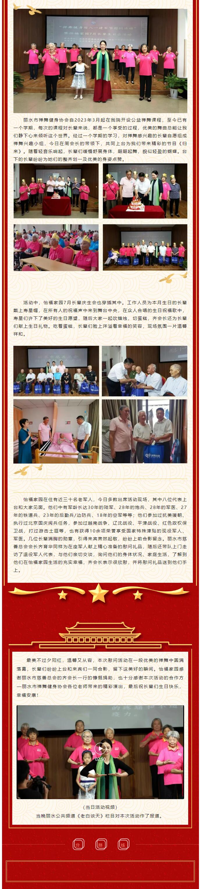 八一公益系列 | 市慈善总会、市禅舞健身协会来到唯康怡福家园开展“禅舞健身迎八一”慰问演出活动