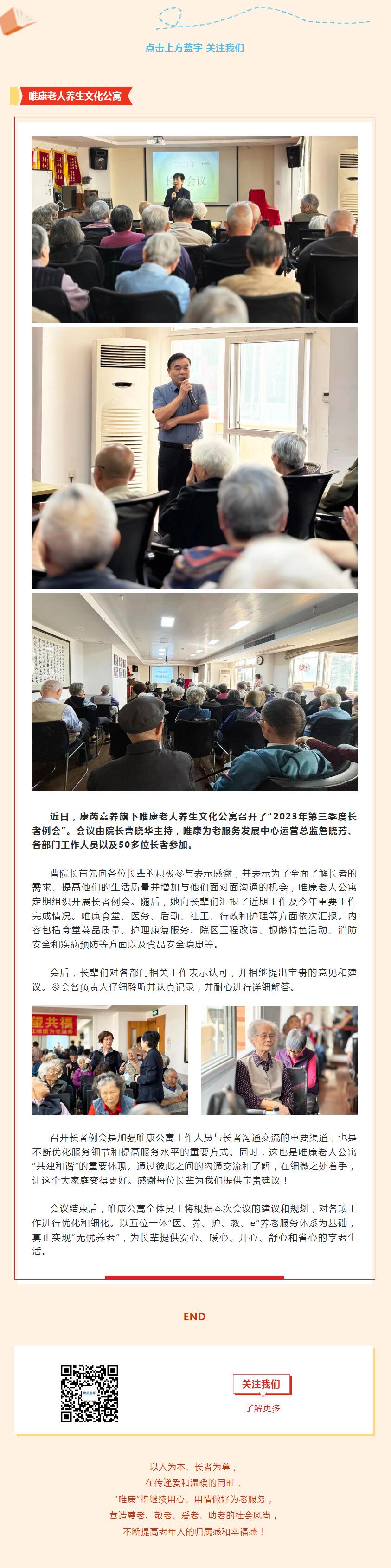 【唯康老人养生文化公寓 】2023年第三季度长者例会