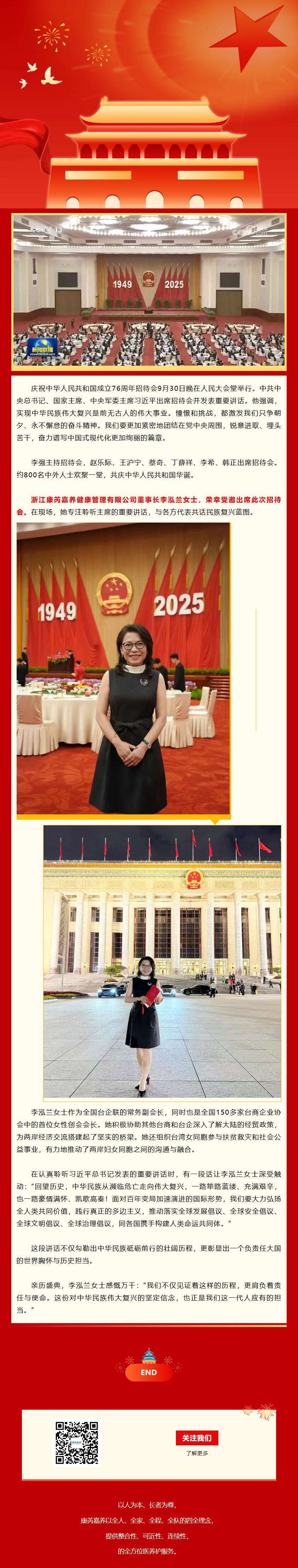 康芮嘉养董事长李泓兰受邀参加在人民大会堂举行的庆祝中华人民共和国成立76周年招待会